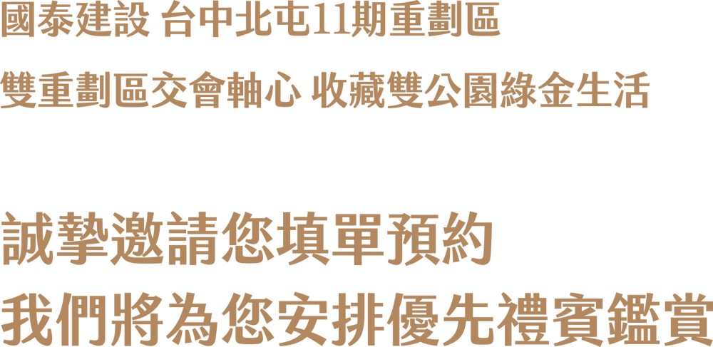 台中最宜居城心,坐擁11期繁華生活機能,坐收14期百億建設發展,雙重劃區交匯軸心,兼融繁華自然,兩全其美的豐沃之地,薈萃質感精湛之琚。收藏雙公園享受綠金生活,書寫北屯篇章,揭啟時代新頁,以台中北屯地標之姿,相邀知音珍稀入席。